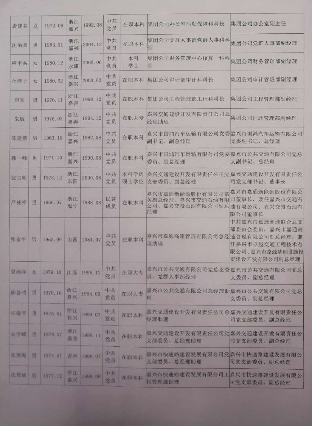 2019年1號嘉通集團擬提拔任用干部任前公示