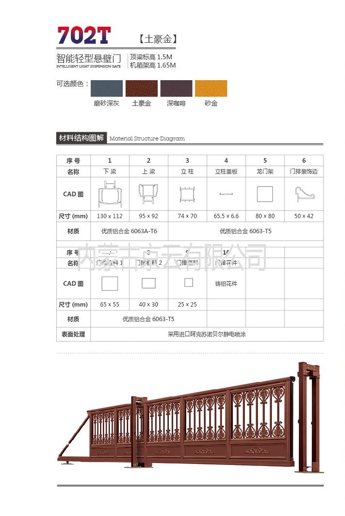 • 產品分類:702T土豪金智能輕型懸臂門